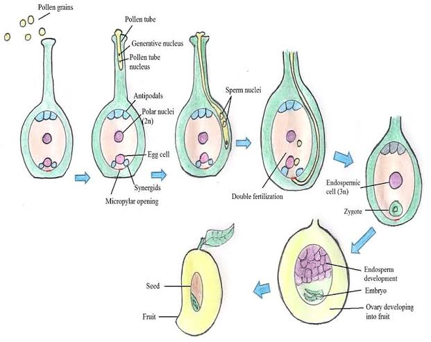 - When male and female gametes become mature, as a result of pollination, fertilization occurs.